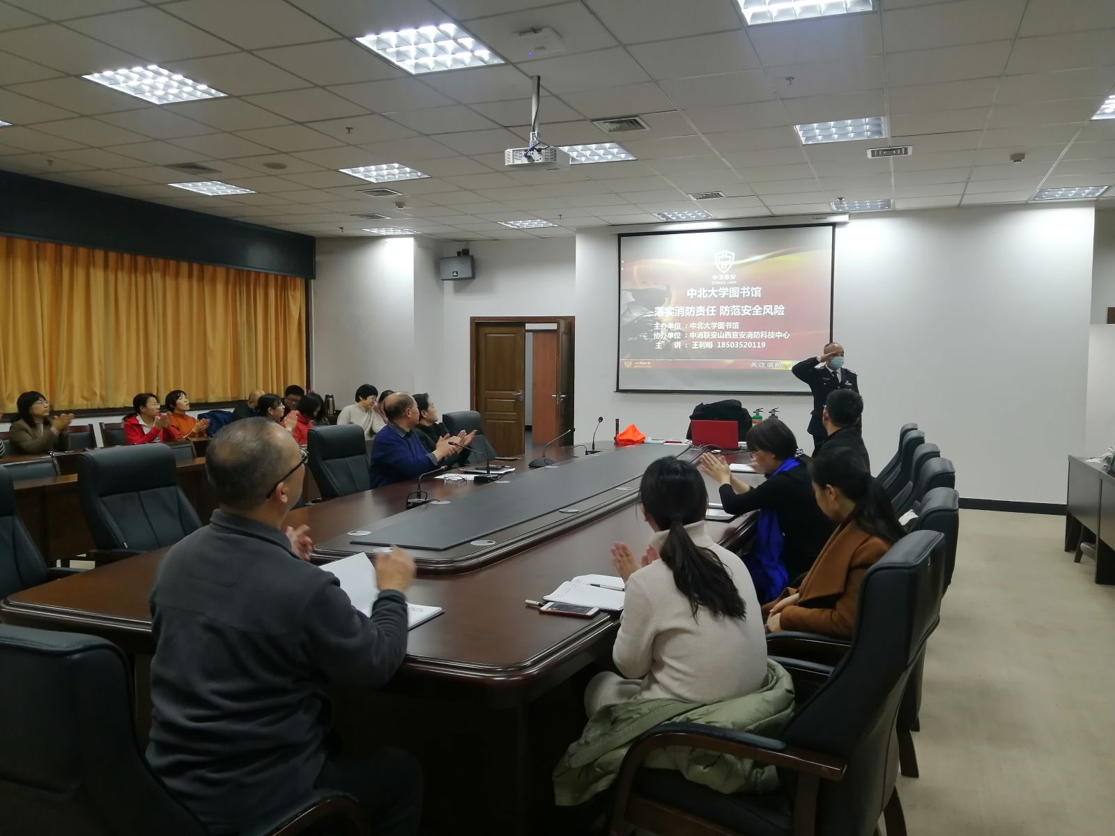 为进一步强化消防宣传教育,提升教职工消防安全素质、自我应变和防护能力,确保图书(档案)馆安全稳定运行。11月18日下午15时,特邀山西宣安消防科技中心主任王利明高级教员在图书馆四层会议室开展消防安全知识讲座,教职工约60余人参加了此次活动,王福明馆长主持。