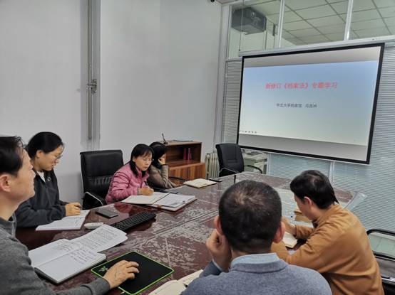 为切实宣传贯彻《中华人民共和国档案法》,提升全体馆员的档案法制意识和档案治理能力,推进依法治档管档工作,2021年12月14日档案馆组织专题学习新修订的《档案法》,并作贯彻落实、交流研讨。会议由冯昆林副馆长主持,全体馆员参加专题学习。